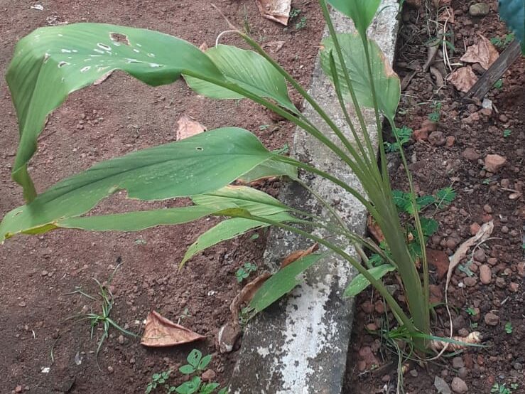 These herbs look very similar to turmeric. In fact, it is only after we harvested the root that we realised it was something different. My aunt makes delicious pickles out of these.