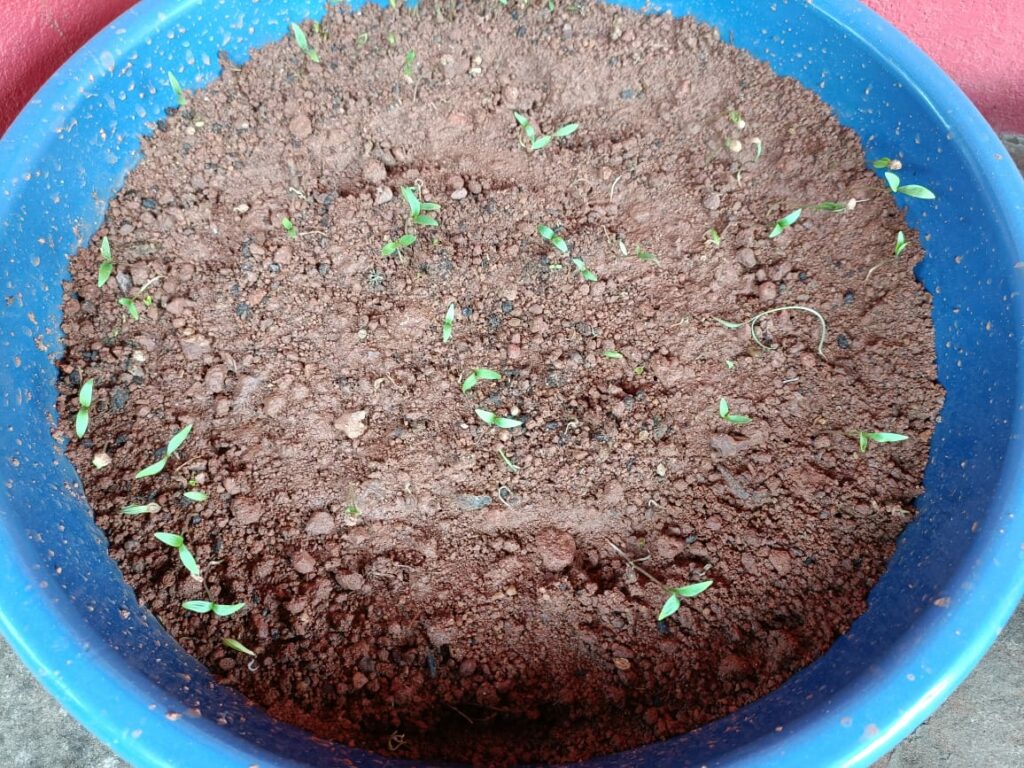 For my first try, I used normal Dhaniya seeds from my kitchen. After ten days, I finally see germination happening.